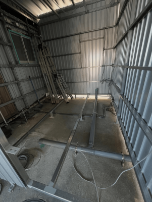 通常の建物とは異なる構造のため、床の水平調整から下地づくりまで丁寧に進めていきました。